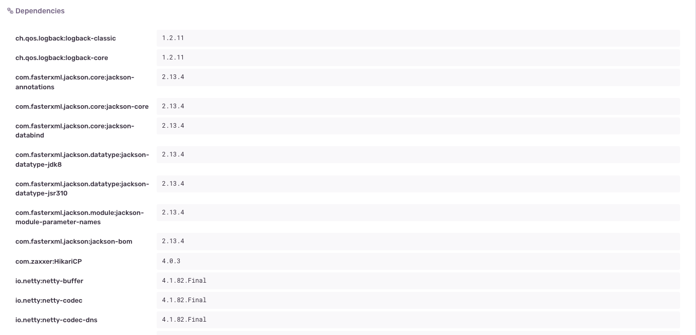 The plugin automatically collects an application's external dependencies (including transitive ones), and generates a compile-time report. The Sentry Java SDK picks up the report at runtime and sends it along with every Sentry event. The event dependencies metadata will look something like this: